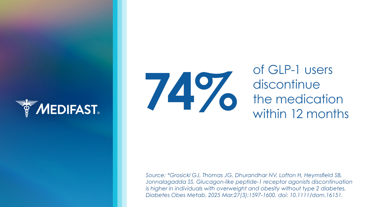 Medifast addresses the full spectrum of consumer needs in today’s weight loss market – whether customers are pursuing habit-based approaches, on GLP-1s or transitioning off the medications. With up to 74% of GLP-1 users discontinuing medications within 12 months, OPTAVIA provides science-backed solutions that can set customers up for success. A comprehensive approach is critical, and we’re delivering it.