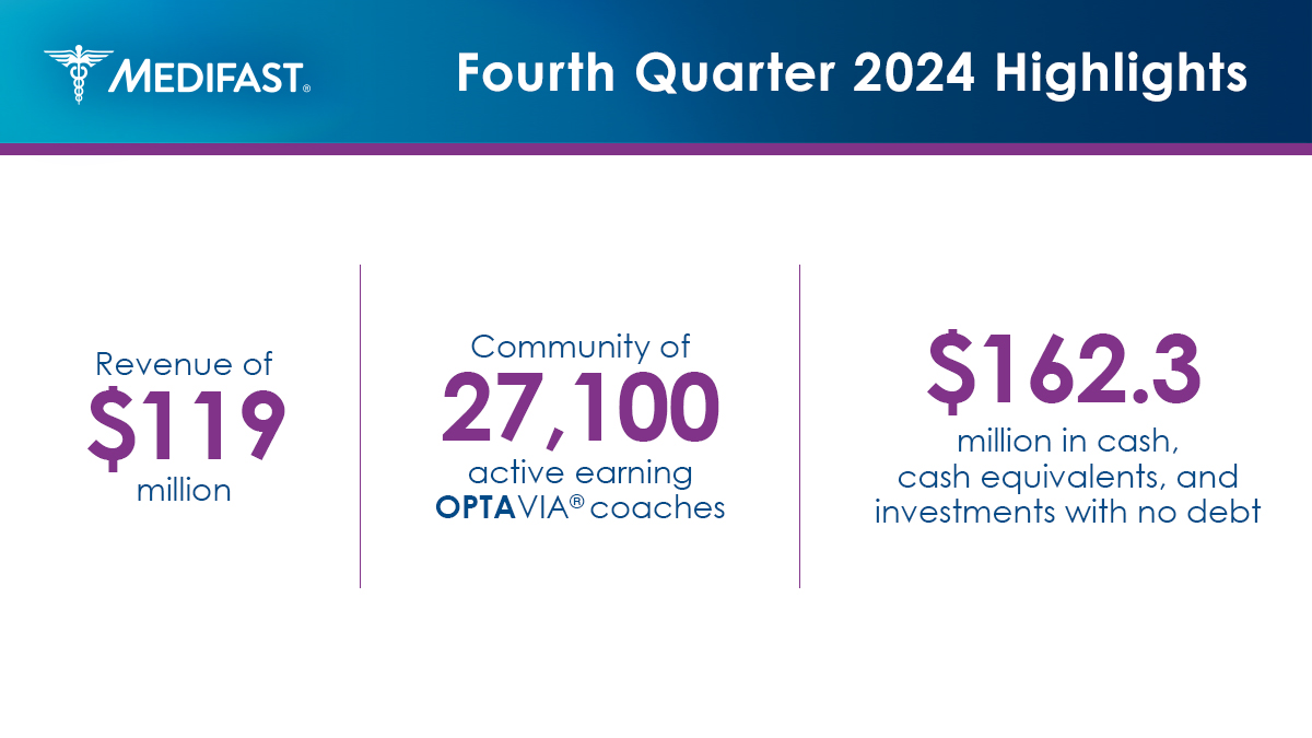 This was an important year for Medifast, as we continued to transform our business to meet the changing nature of a health and wellness market that has been revolutionized by the rising acceptance of GLP-1 weight loss medications. As we look ahead, we believe our efforts will broaden our reach, restore revenue and profitability growth and deliver long-term value to all our stakeholders.